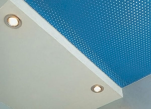 Если не хочется осуществлять звукоизоляцию отдельным образом, можно выбрать альтернативный вариант – шумоизоляционные натяжные потолки. Эффект поглощения посторонних звуков происходит за счет множества маленьких отверстий – проколов. Воздух, находящийся в данных отверстиях, мешает поступлению звуковых волн через полотно. Помимо этого, при установке конструкции , появляется запотолочное пространство, которое мешает возникновению шума. Преимущество таких изделий заключается в том, что они блокируют не только шум, поступающий в ваше жилье от соседей, но и звуки, которые производите вы в комнате.