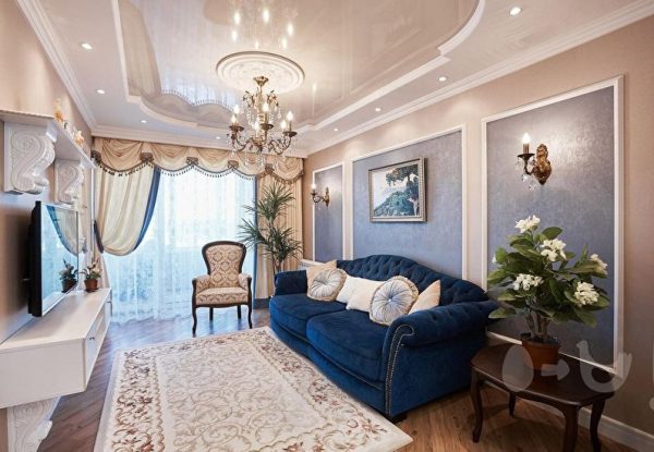 Двухуровневые натяжные потолки эффектно смотрятся, сделали в гостиной, шикарно получилось.