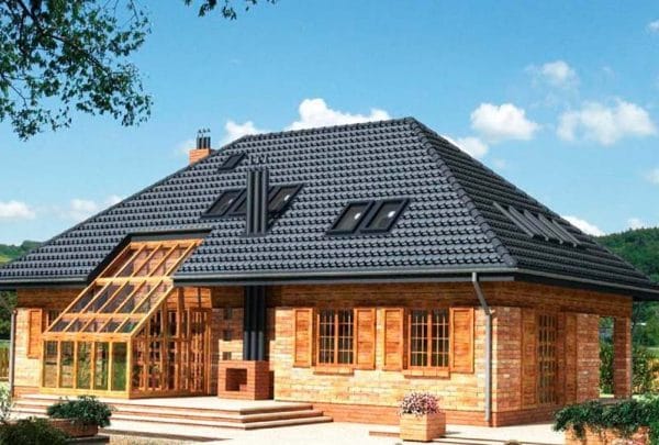 - Вальмовая. Весьма выигрышный вариант по площади, но отсутствуют фронтоны. Оконные системы размещаются на скатах.