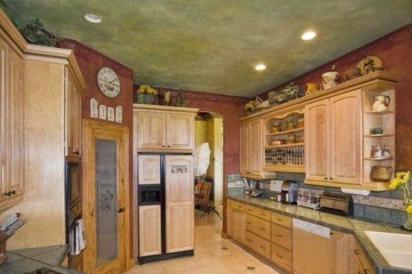 - Кухня. Не лучшее помещение для воплощения данной идеи. В бороздках рельефного рисунка будет скапливаться жир и копоть, а затем попадать в пищу. Тем не менее, при желании сделать такую отделку можно, но в таком случае потолочную поверхность понадобиться протирать каждый день.