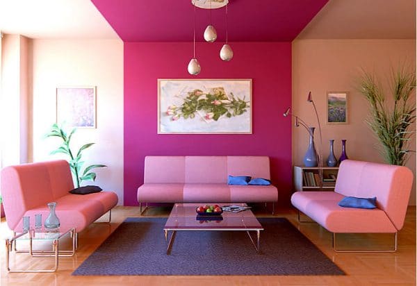 Потолок цвета фуксии – подходящий вариант для оформления спальни или гламурной гостиной. Но дизайн в розовых тонах подойдет и для других комнат, если подобрать правильное сочетание цветов.